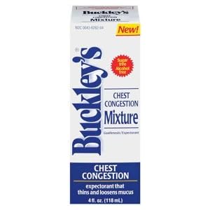Product Description : INDICATIONS: Buckleys Chest Congestion Mixture helps loosen the mucus that causes chest congestion by thinning bronchial secretions to drain bronchial tubes. This action makes coughs more productive. Buckleys Chest Congestion is also sugar.