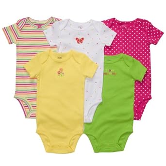 Vendor: 100% lightweight cotton knit - super soft and comfy This 5-pack of brightly colored short sleeve bodysuits has scalloped stitch